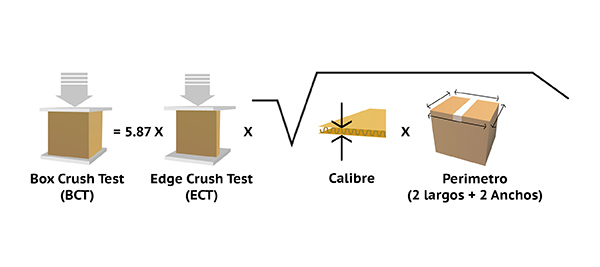 La Prueba de Compresión de Caja (BCT) se emplea para determinar la capacidad de apilamiento de las cajas. Se calcula mediante la fórmula de McKee: