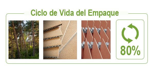 El cartón corrugado proviene de fuentes renovables, como bosques certificados FSC y fibra reciclada. Se requiere menor energía para producir papel reciclado en comparación con la producción de fibra virgen.