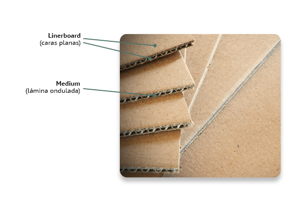 El empaque de cartón se compone principalmente de dos elementos: el linerboard (caras planas) y el medium (lámina ondulada). Estos materiales están hechos de fibras de celulosa, que pueden provenir de madera virgen o reciclada.