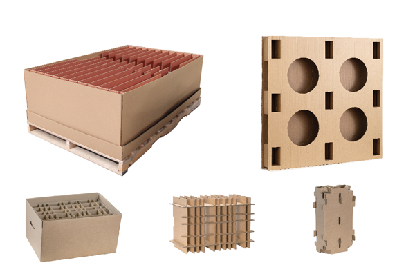 El cartón corrugado se utiliza en cajas de embalaje, separadores, divisores y estructuras internas para protección de componentes como: