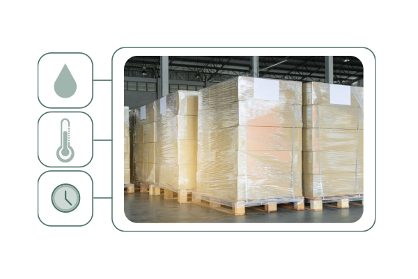 El cartón debe resistir la humedad relativa en almacenes y transporte marítimo. Se pueden aplicar recubrimientos hidrofóbicos o tratamientos con ceras biodegradables.